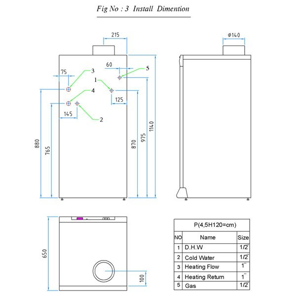 | مدل | حداکثر توان گرمایي | ابعاد دستگاه (cm) | تامین آبگرم بهداشتی lit/min در˚T=30C∆ | قطر دودکش (cm) | وزن پکیج مخزن دار بلند | قطر لوله گاز in | قیمت (ریال) | |||